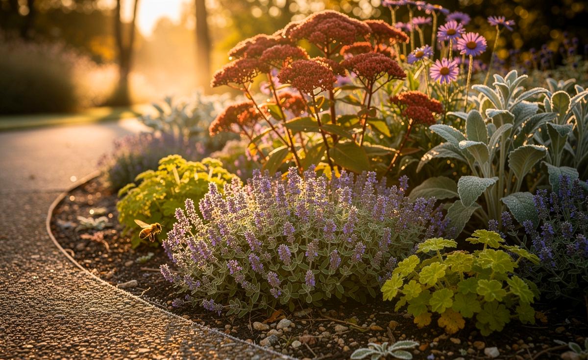 - 🎨 Durchdachte Kombinationen mit Sedum telephium ‘Herbstfreude’, Herbstastern, Alchemilla mollis und Stachys byzantina strecken die Saison, bringen Struktur und verstärken die Unkrautkontrolle.
