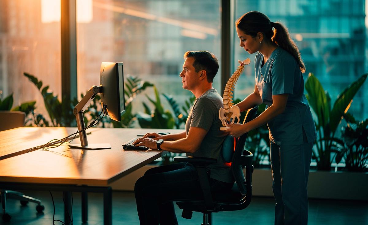 - 💪 Gezielte Übungen: 5‑Minuten‑Desk‑Routine (Nacken‑Retraktion, Schulterblatt‑Squeeze, Beckenkippungen), Mobilisation BWS/Hüftbeuger, 2–3×/Woche Rumpfstabilität kräftigen.